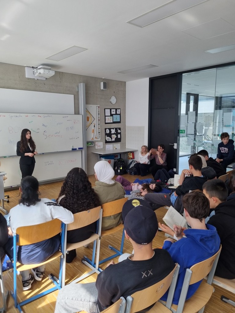 Die Schüler*innen der 2D verwandelten ihre Klasse in einen Veranstaltungsraum. Sprachen und Dialekte, die im schulischen Alltag meist im Verborgenen bleiben, wurden von Lehrer*innen sichtbar gemacht.