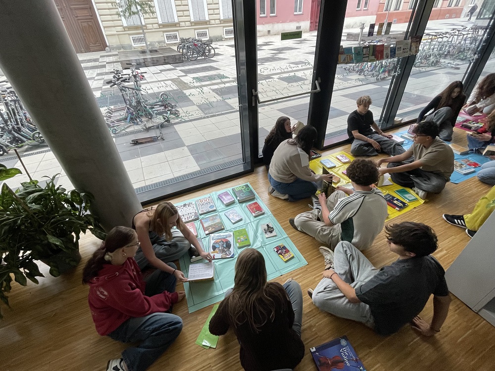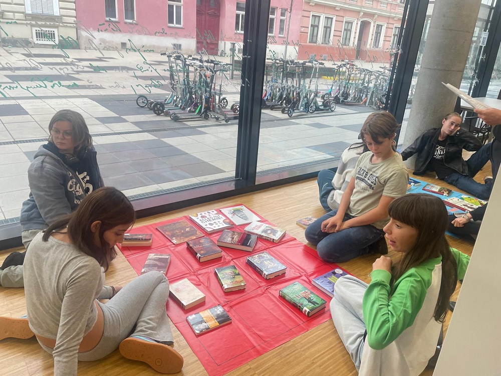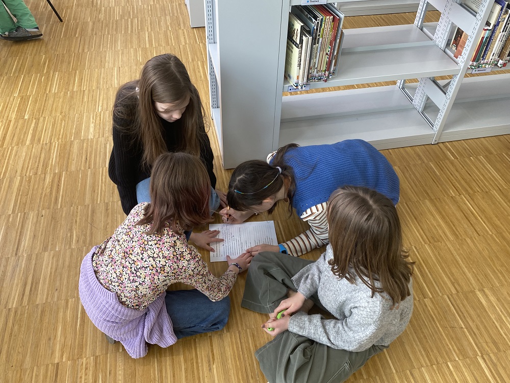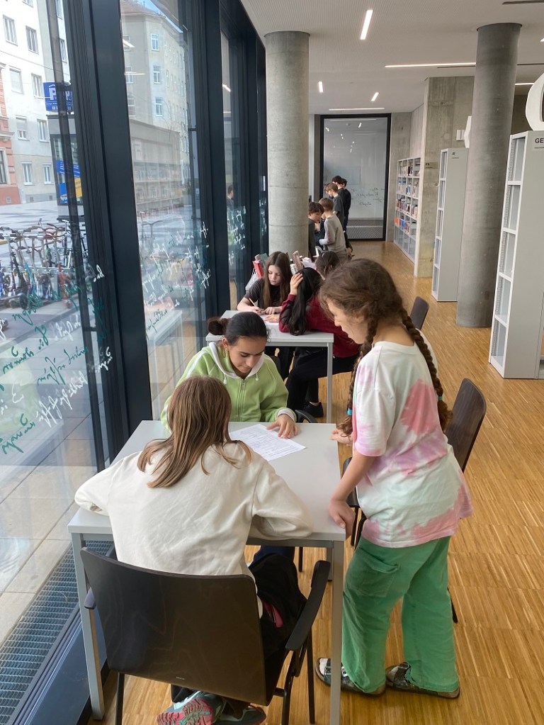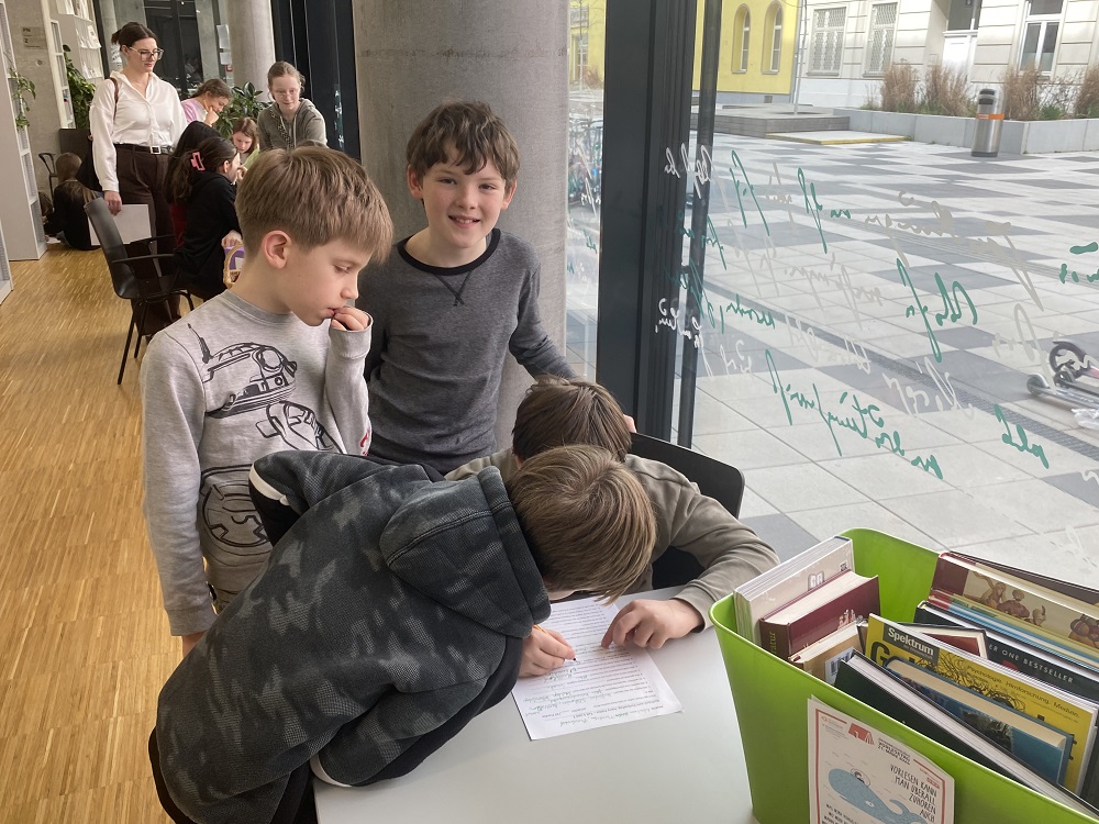 Anlässlich des Österreichischen Vorlesetages fand in unserer Schulbibliothek ein Harry-Potter-Vorlese-Event statt. Die Drittklässlerinnen Mara und Mia lasen der 1C ausgewählte Stellen aus Harry Potter vor. Die Schüler*innen arbeiteten im Anschluss daran in Gruppen ein Quiz mit kniffligen Fragen dazu aus. Alle hatten viel Spaß dabei! Vielen Dank den Vorleserinnen vom Bibliotheksteam!