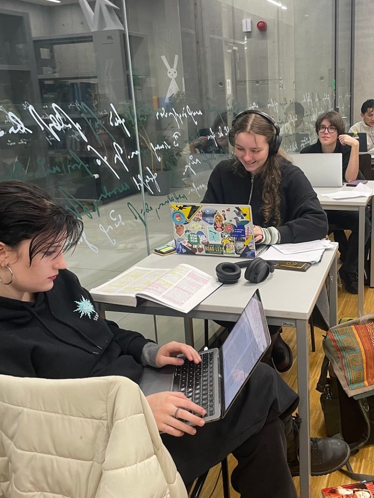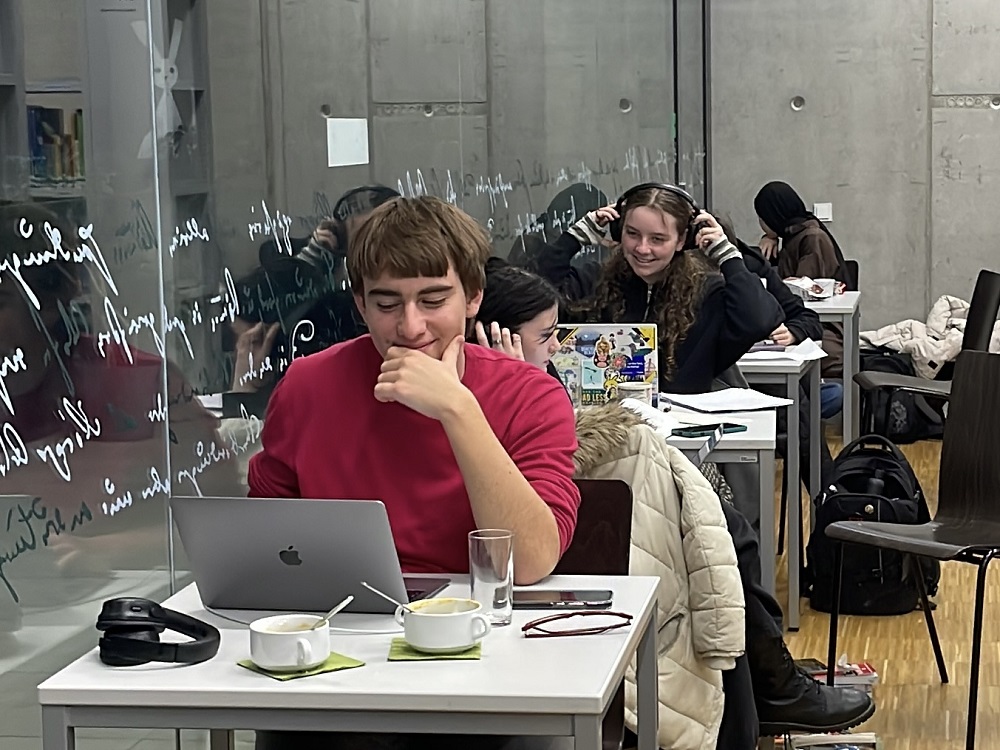 Es trafen sich abends 20 Schüler*innen der achten Klassen, um an ihren abschließenden Arbeiten (ABA) zu werken. Bis 10h nachts wurde in der Schulbibliothek am Layout und an Formulierungen gefeilt sowie richtiges Zitieren diskutiert. Prof. Eineter, Muroni und Dirlinger unterstützten mit fachkundigen Ratschlägen. Karottensuppe und heißer Tee lieferten die nötige Energie, um durchzuhalten.