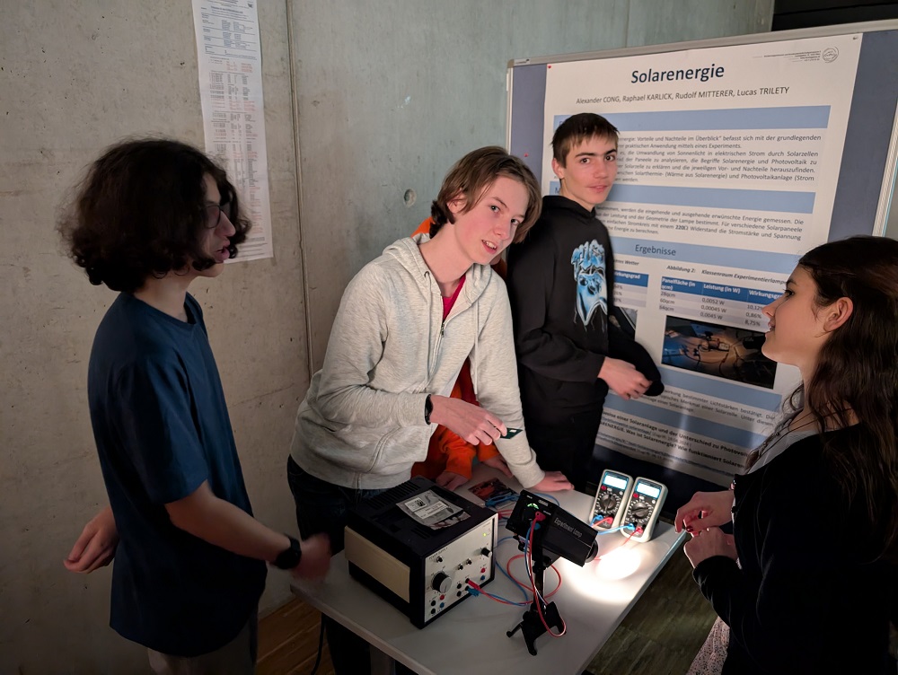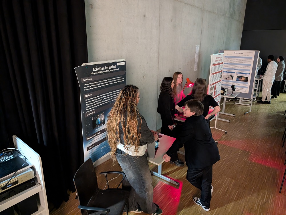 In der ersten Woche nach den Semesterferien fand die NaWi-Projektwoche der 5RG1 und 5RG2 statt. Die Schüler*innen des naturwissenschaftlichen Schwerpunkts arbeiteten an unterschiedlichen Fragestellungen zum Thema „Licht und Schatten“. Sie recherchierten, führten Experimente durch und zeigten ihre Ergebnisse, wie in der Wissenschaft üblich, anhand von Vorträgen und Posterpräsentationen.