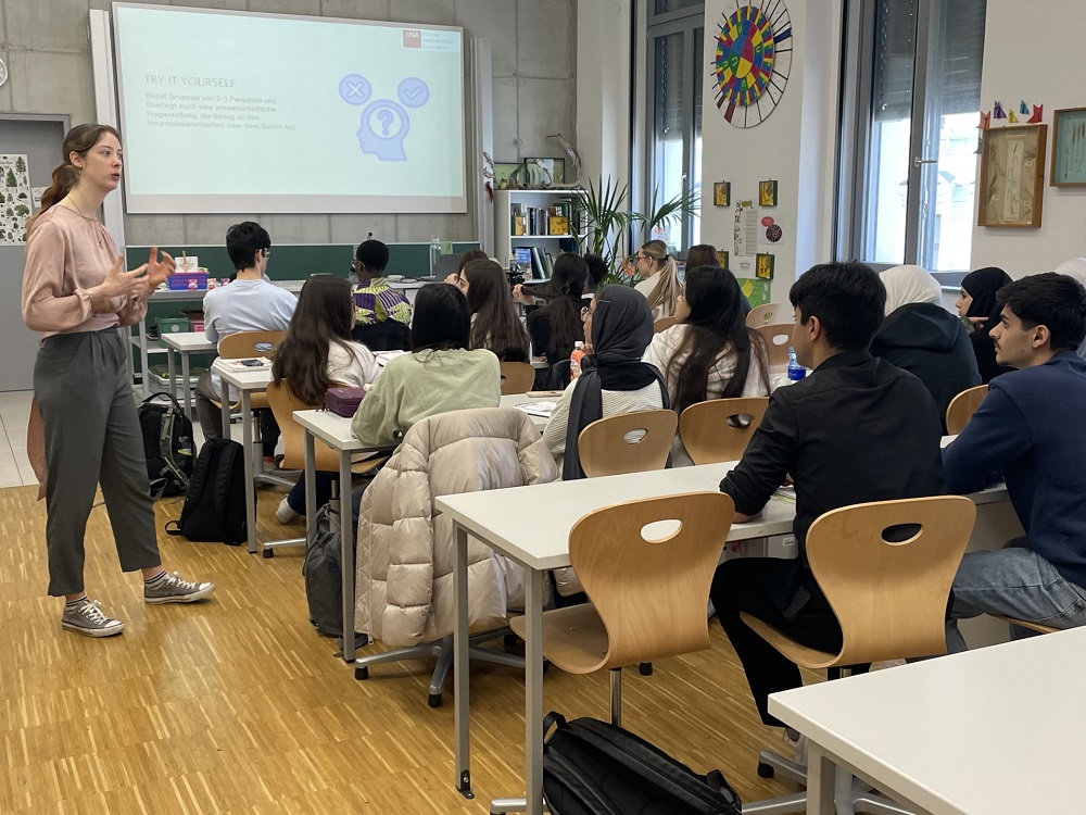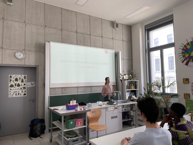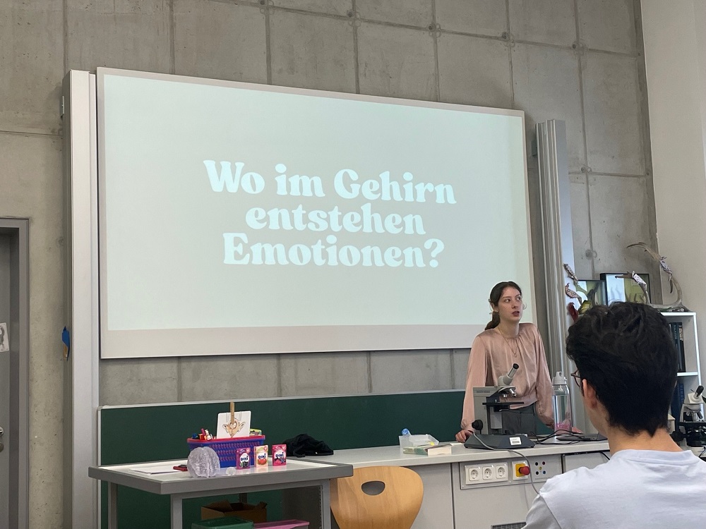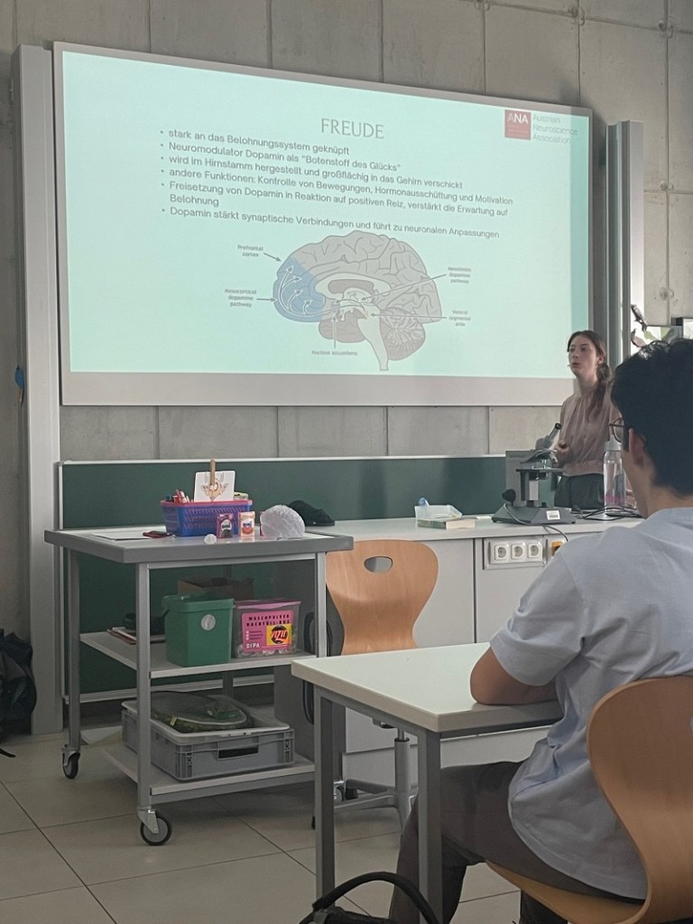 Eine Neurobiologin der Medizinischen Universität Wien besuchte den Biologieunterricht der 6N1, um genau diese Frage zu beantworten und fesselnde Einblicke in die Welt der Wissenschaft zu geben. Neben spannenden Informationen zu allgemeinen Untersuchungsmethoden des menschlichen Gehirns, hat sie auch über ihre eigene Forschung berichtet. So lernten die Schüler*innen Faszinierendes über die Verarbeitung von Emotionen. Die Siegerin des Emotionsquiz am Ende des Workshops wurde mit einem Buch belohnt! 😊