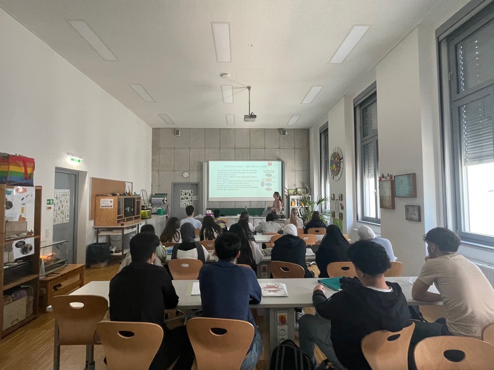 Das Wahlpflichftfach Psychologie und Philosophie hat an der Universität Wien eine Vorlesung der Soziologie zum Thema „Gesellschaftsdiagnosen – Die technologische Gesellschaft“ besucht. Die Schüler*innen konnten sich dabei mit Wortmeldungen und Fragen an der Vorlesung beteiligen und haben erstmals „Uni-Luft“ geschnuppert.