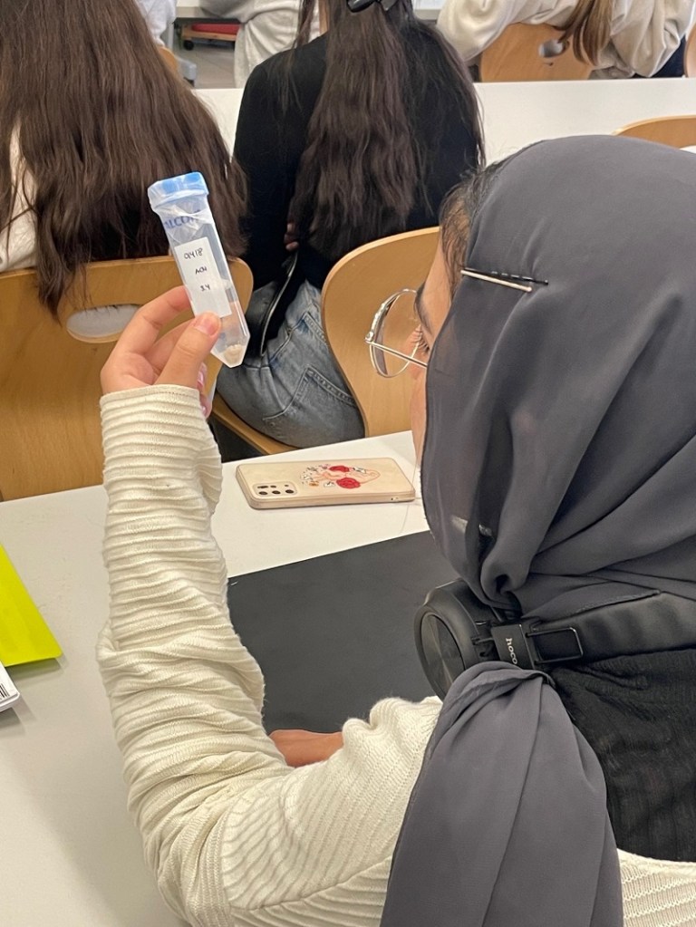 „Die Projektwoche zum Thema „Licht und Schatten“ hat mir sehr gefallen, besonders das freie Arbeiten fand ich sehr angenehm. Ich konnte viel dazulernen, unter anderem über Lumineszenz, ihre Einflüsse sowie chemische Prozesse und Reaktionen, die mit biologischen Zusammenhängen verknüpft sind.Auch die Gruppeneinteilung und der Escape Room waren gut durchdacht, und die Zeitplanung war sehr passend. Ein Verbesserungsvorschlag wäre, mehr Lehrpersonen für den biologischen Teil bereitzustellen. Da wir in mehreren Sälen gearbeitet haben, wäre es hilfreich, wenn in jedem Saal mindestens eine Lehrkraft anwesend wäre, um die Arbeit effektiver zu gestalten.Insgesamt war es eine sehr spannende und lehrreiche Woche!“ (Ifra Alam, 5RG1)