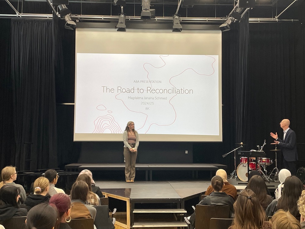 Um den Schüler*innen der 6. Klassen – die demnächst vor der Entscheidung stehen, ob sie selbst eine ABA schreiben möchten – einen Einblick zu gewähren, wie gut gelungene Abschlussarbeiten aussehen, haben ihnen Schüler*innen der 8. Klassen ihre ABA-Präsentationen vorgeführt. Gebannt hörten sich die Schüler*innen die eloquenten Vorträge der Maturant*innen an und lernten kennen, wie weit das Feld möglicher Themen und Methoden ist.