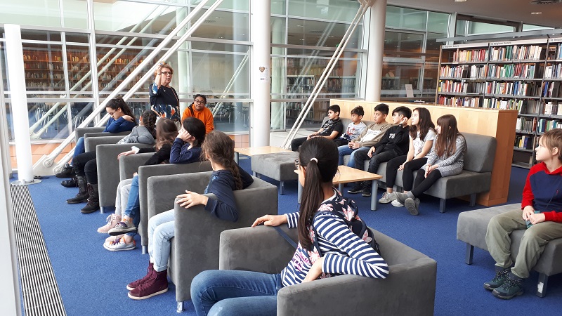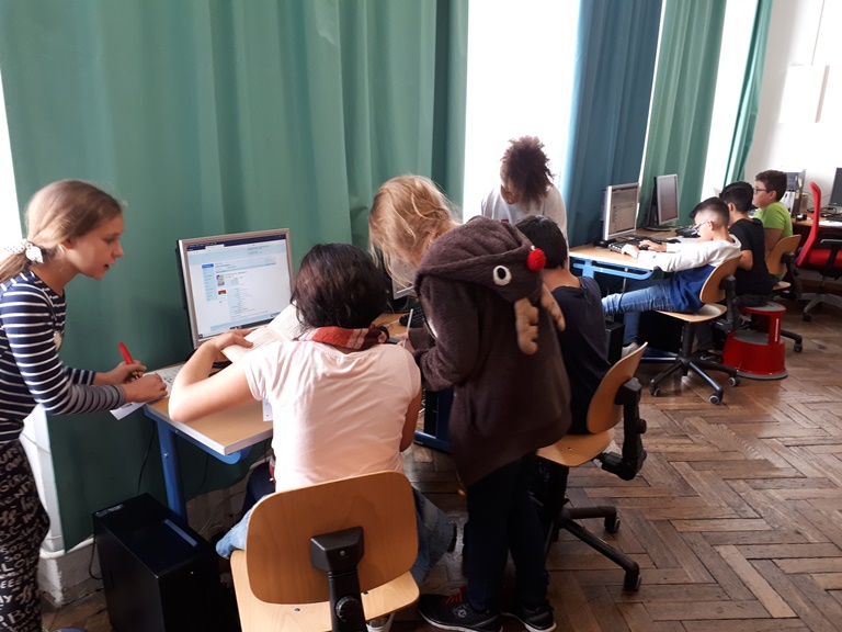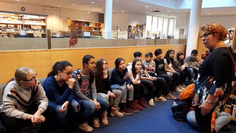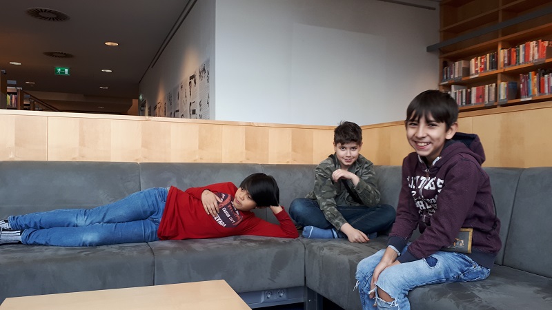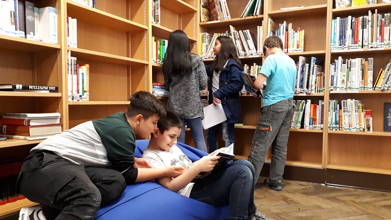 Beim ersten Mal ging es für die SchülerInnen um Grundlagen: es wurde eine Hausführung veranstaltet und alle erhielten eine erste Entlehnschulung.