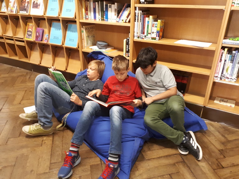 Die Führungen durch die Schulbibliothek mit den Schülerinnen und Schülern der heurigen 1. Klassen waren wieder sehr lustig und spannend! Nachdem Fr. Prof. Peer alles gezeigt und erklärt hatte, ging es losmit dem Stationenbetrieb in Kleingruppen. Viele nützten auch schon die Gelegenheit, ihre ersten Bücher aus der Schulbibliothek auszuborgen. Allen hat´s gefallen und sie sind sich einig: Die grüne Sofa-Landschaft und die Sitzkissen sind „megacool“!