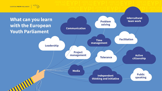 Das Europäische Jugendparlament ist ein überparteilicher und gemeinnütziger Verein. EYP organisiert jedes Jahr mehr als 500 Veranstaltungen, an denen über 30.000 Jugendliche aus 40 europäischen Ländern teilnehmen.