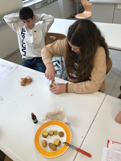 Der experimentelle Teil: Stärke aus Kartoffeln isolieren und unter dem Mikroskop betrachten sowie Stärke durch Reaktion mit Iod nachweisen.