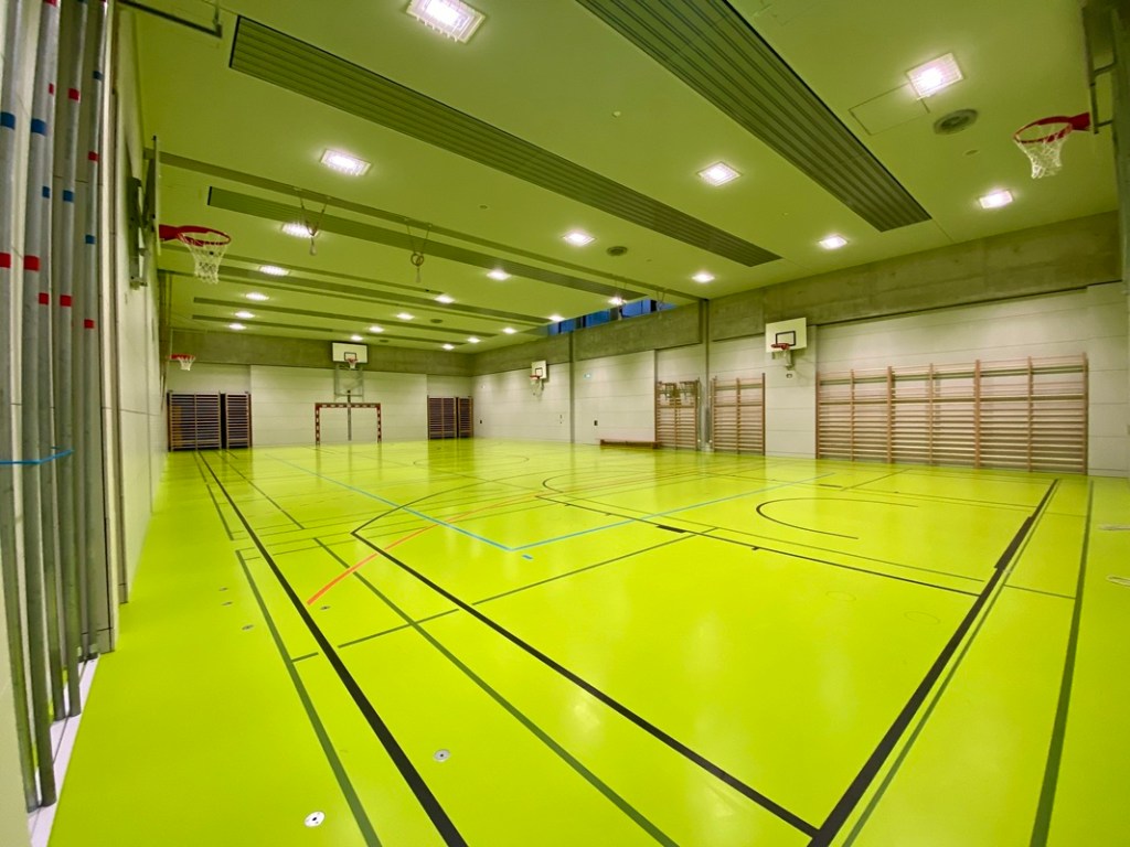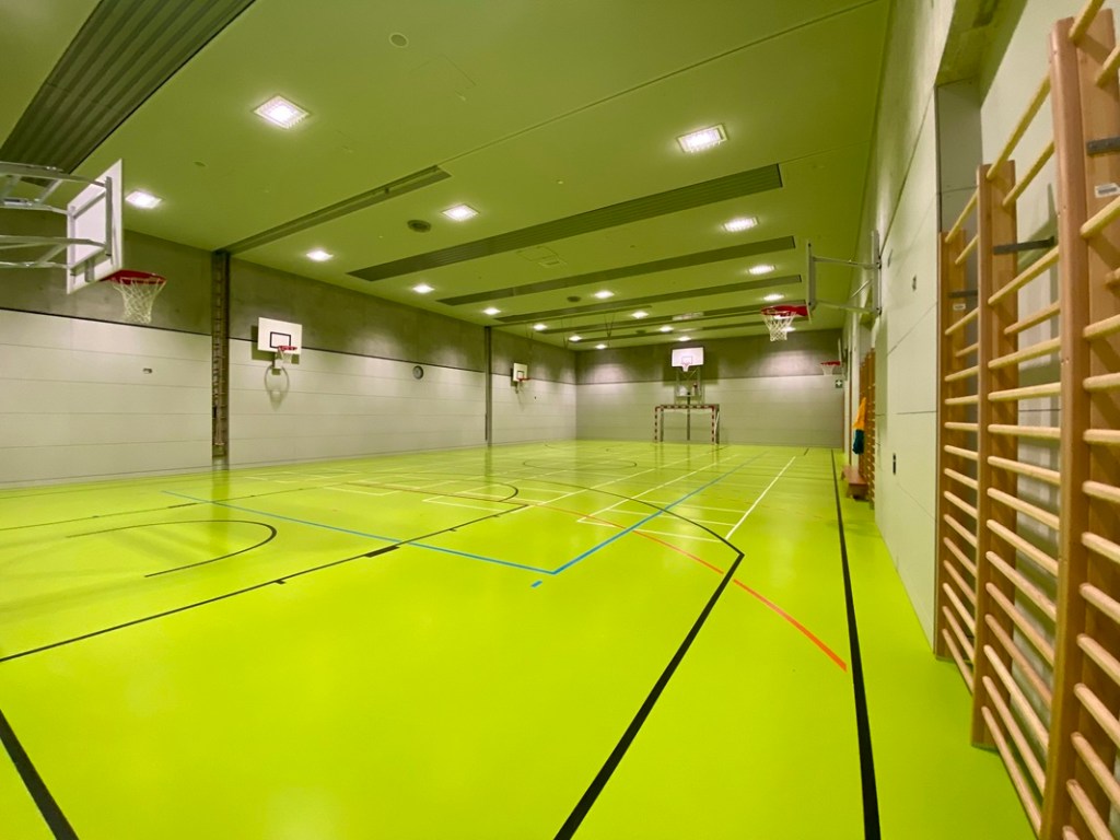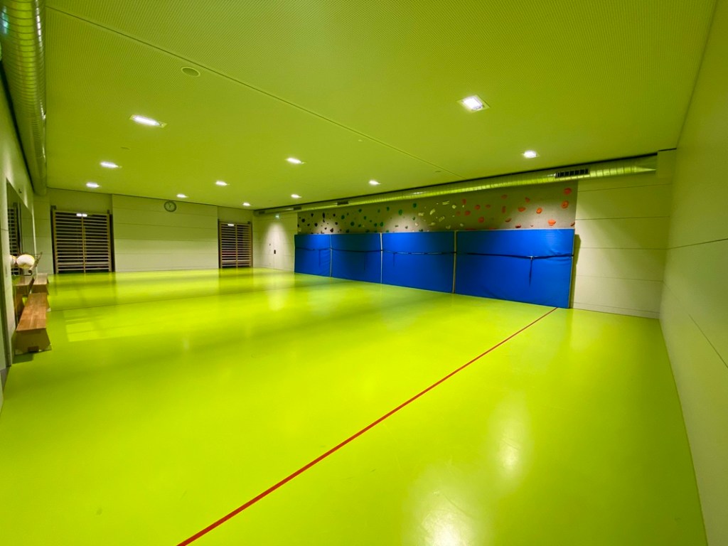 Mit unseren drei großen Sporthallen, einem bestens ausgestatteten Bewegungsraum und einer hauseigenen Boulderwand bieten wir ideale Voraussetzungen für vielfältige Bewegungserfahrungen und sportliche Aktivitäten: