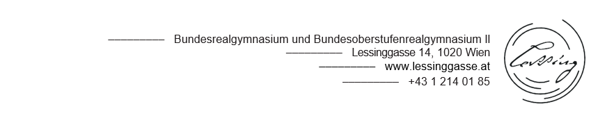 Formulare Für Schüler*innen und Eltern Entschuldigung Ansuchen um Freistellung Anmeldeformular Unterstufe Anmeldeformular Übergangsstufe Anmeldeformular Oberstufe Abmeldeformular Für Lehrer*innen Dienstauftrag & Sonderurlaub Förderkurs Förderkurs Einreichung und Abrechnung Förderkurs SuS.Anmeldung Schulveranstaltungen Lehrausgang Antrag Schulveranstaltung mehrtägig Meldung Schulveranstaltung mehrtägig für SOKRATES Abrechnung Schulveranstaltung Amtsschriften Pflegefreistellung Anuchen um Herabsetzen der Lehrverpflichtung pragmatisiert Anuchen um Herabsetzen der Lehrverpflichtung Ansuchen Zeitkonto Standesänderungen Meldung VWA Mitteilung aktueller Leistungsstand der VwA Briefkopf Briefkopf Lessinggasse