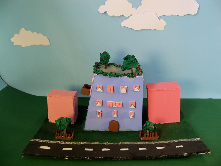 Die Wohnhäuser der SchülerInnen spiegeln Hundertwassers Philosophie – ein Leben in Einklang mit der Natur – wider. Ziel der Schülerarbeiten sind Wohnentwürfe mit Dachbewaldung, Baumhäuser, unregelmäßige Formen der Wohnhausanlagen und ihre bunte Gestaltung.