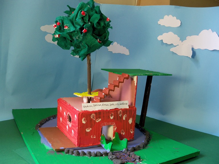 Ausgehend von der Auseinandersetzung mit Begrifflichkeiten wie „Nachhaltigkeit“ und „Ökologie“ wurden Kreuzworträtsel erstellt, der ökologische Fußabdruck berechnet und Wohnmodelle gebaut.